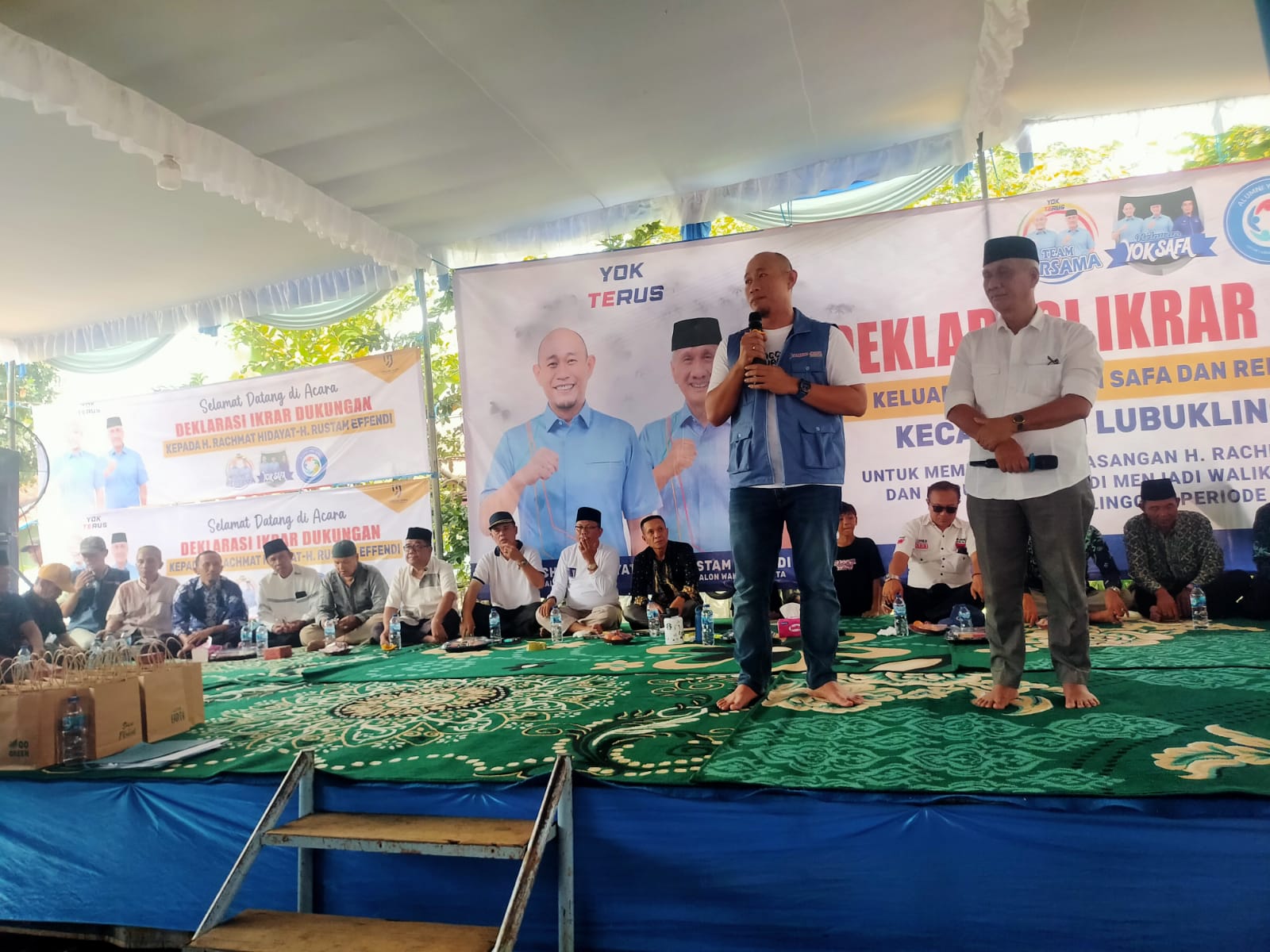 Berta, salah satu pendukung dalam deklarasinya menyampaikan bahwa dirinya bersama dengan warga yang hadir bertekad untuk memenangkan H. Rachmat Hidayat dan H. Rustam Effendi menjadi Wali Kota dan Wakil Wali Kota Lubuk Linggau.